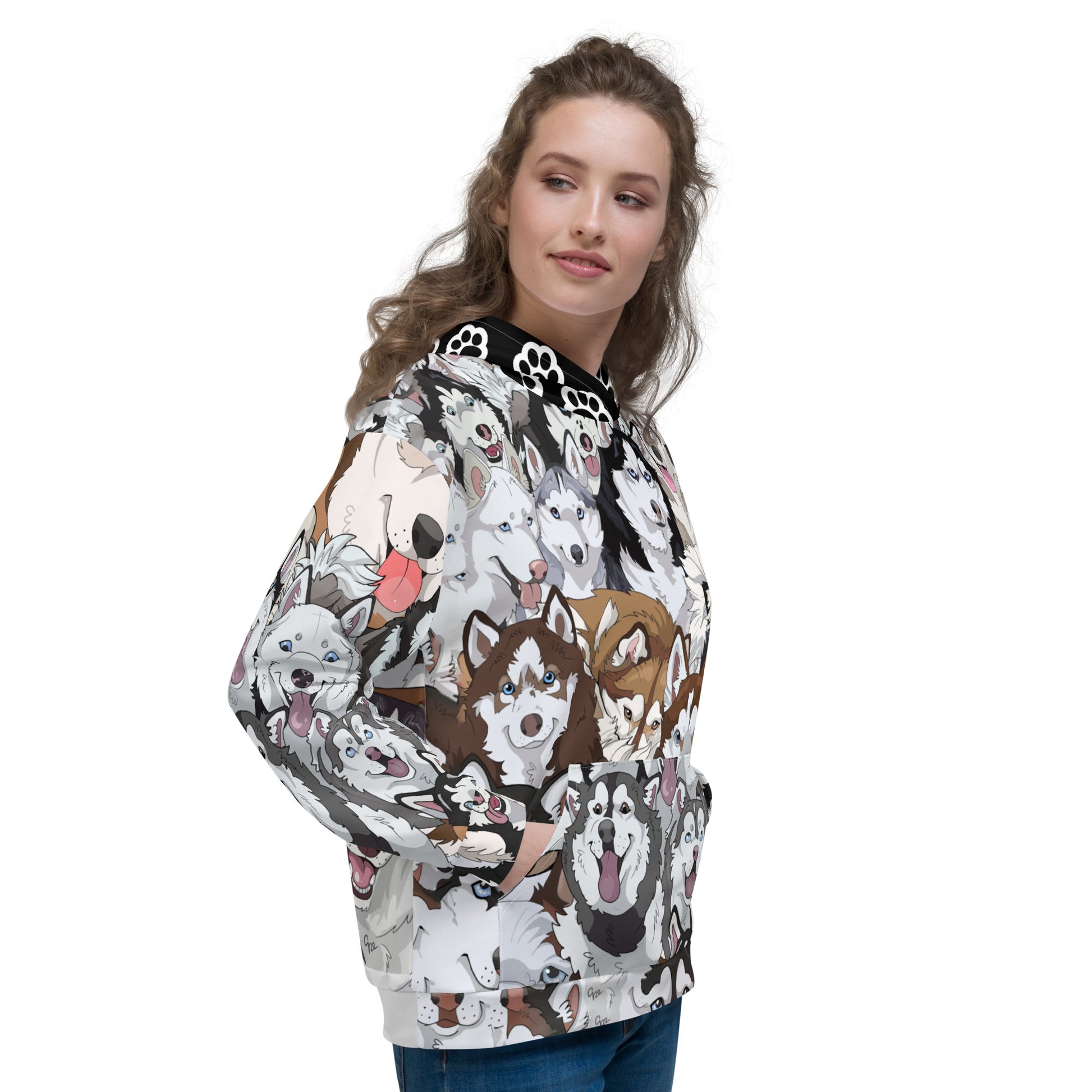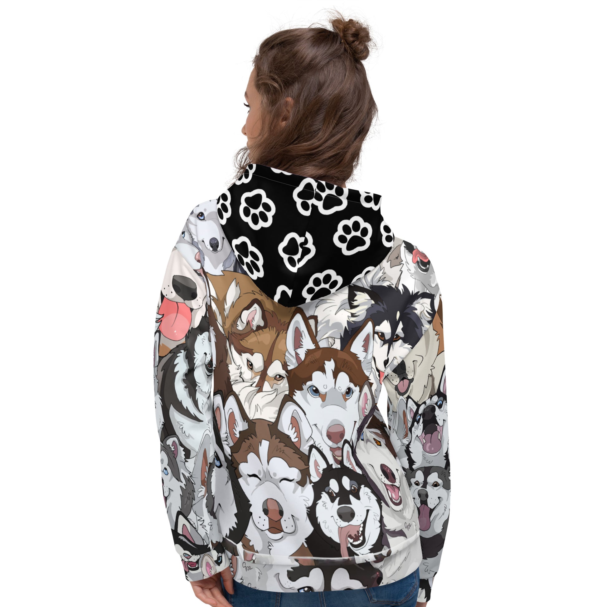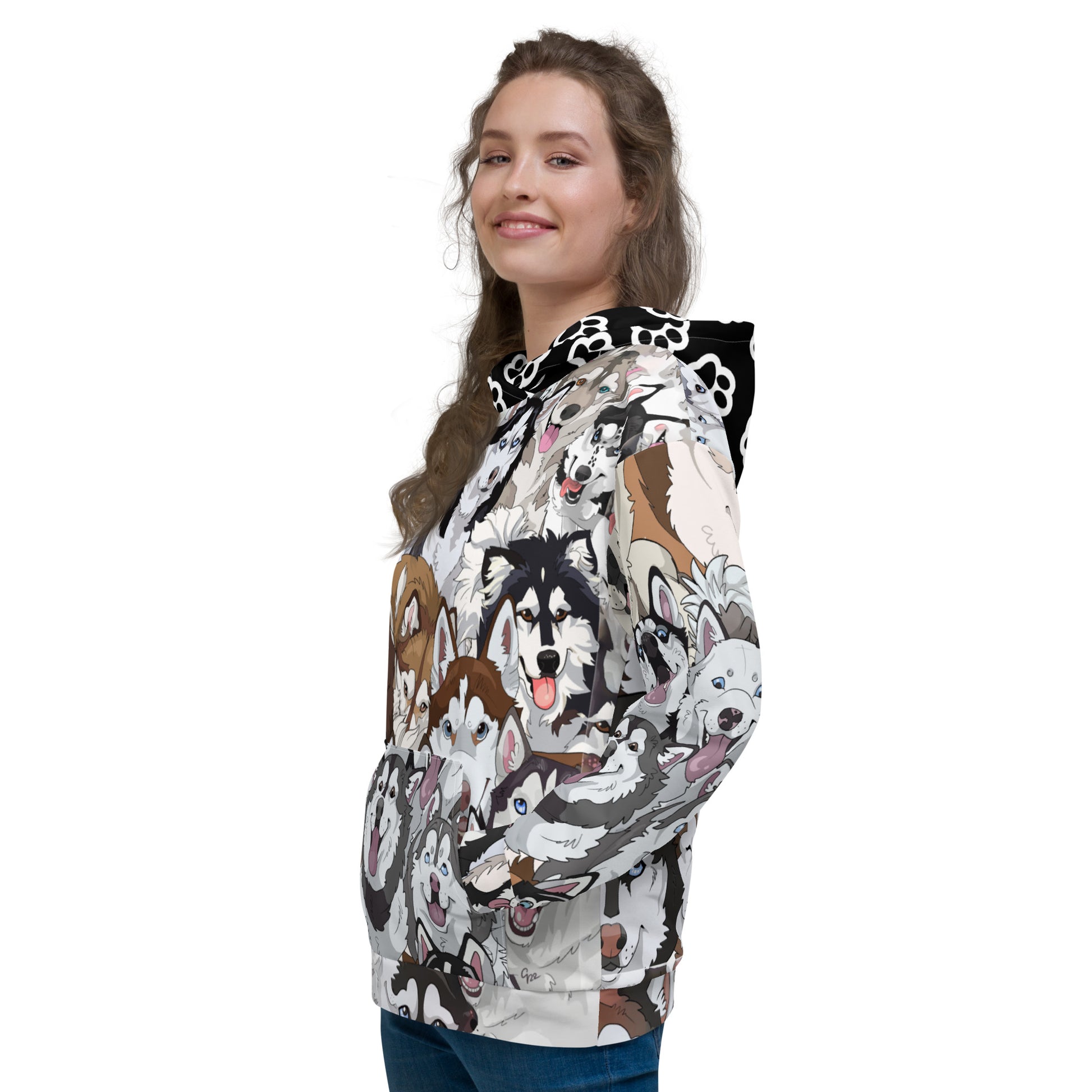 Cute colorful cartoon snow dogs are all over this fuzzy fun hoodie! You will find Sterling and Walker McGee and the famous Moo Cow the husky from Pine Ridge Siberians among the huskies featured. If you want a colorful gift for the snow dog lover in your life, this is perfect for any gift giving occasion.